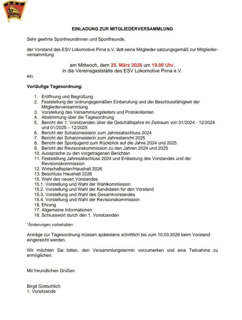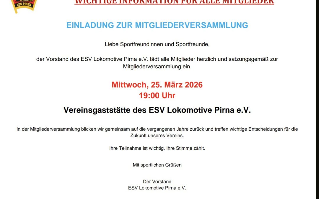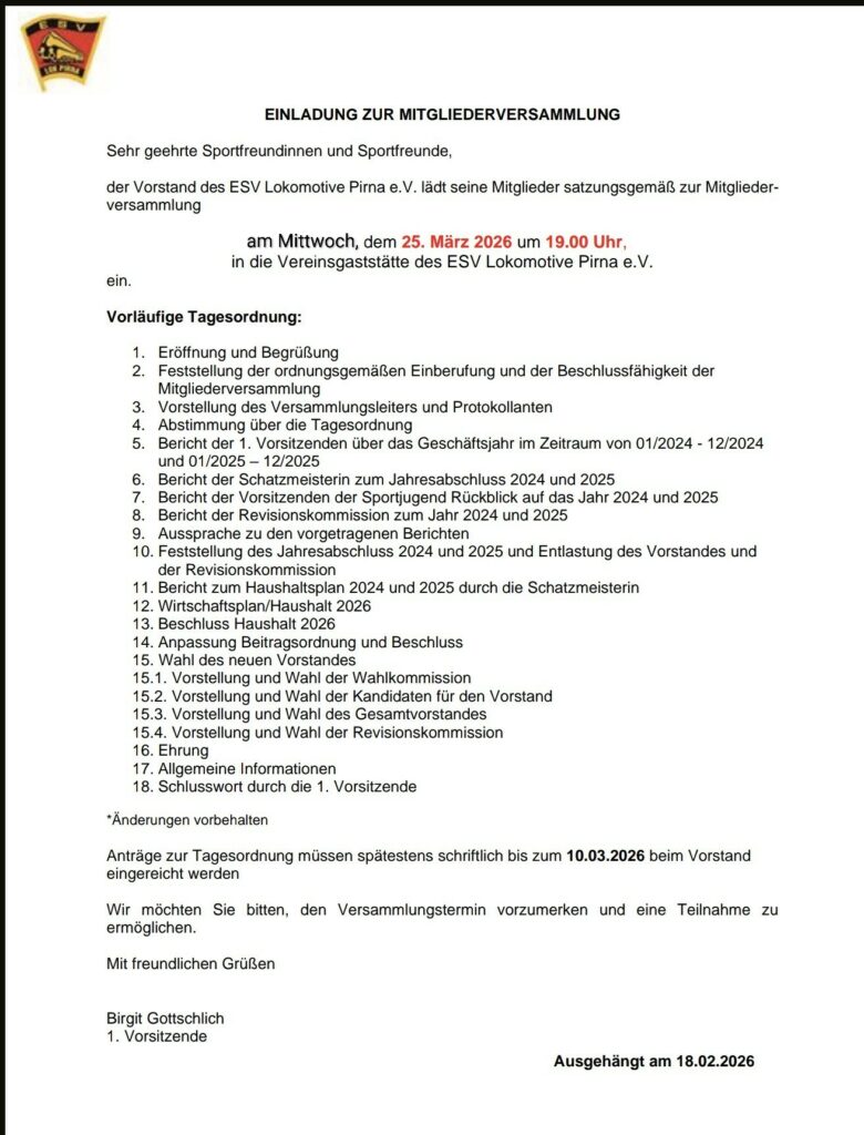 Mitgliederversammlung von Sven Tiedemann | Feb. 26, 2026 | Allgemein, Verein Mittwoch, 25.03.26 / 19 Uhr